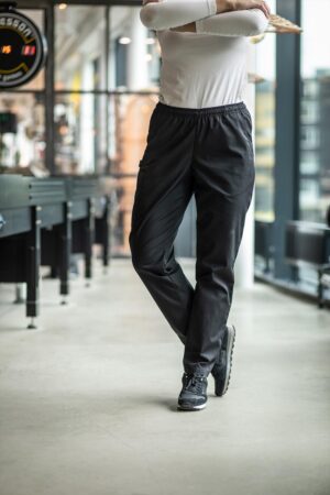 Strikklinning med snor Skrå sidelommer og lomme høyre ben Slitesterkt materiale