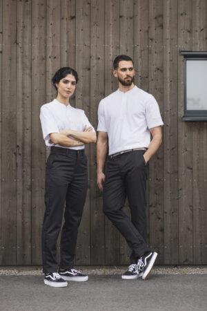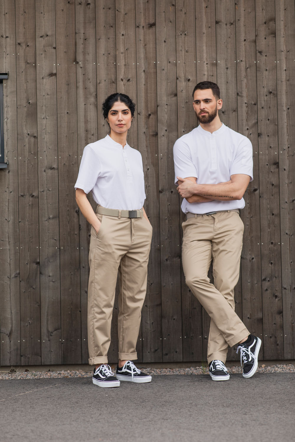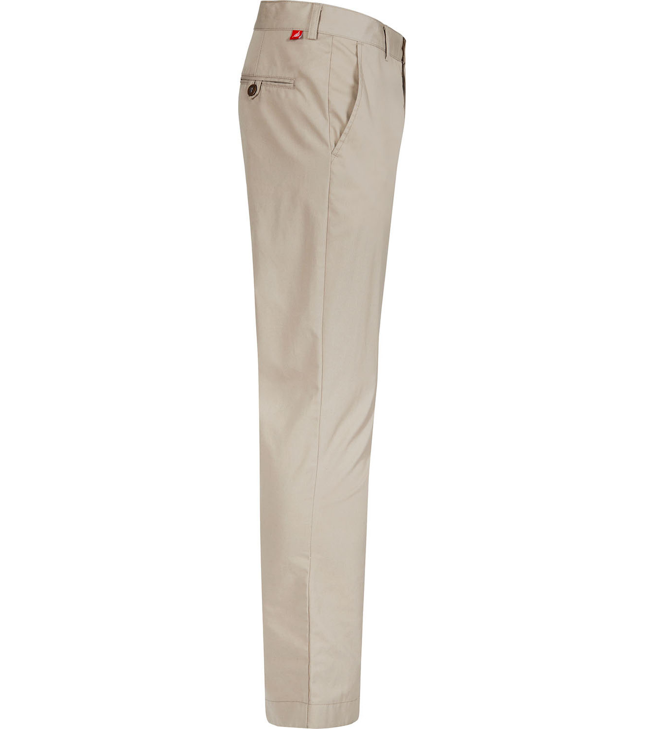 Herrebukse i chinosmodell med moderne passform, som både kan brukes i normal størrelse eller mer avslappet avhengig av hvilken størrelse du velger. Falden på benet kan enkelt justeres til en lengre lengde.