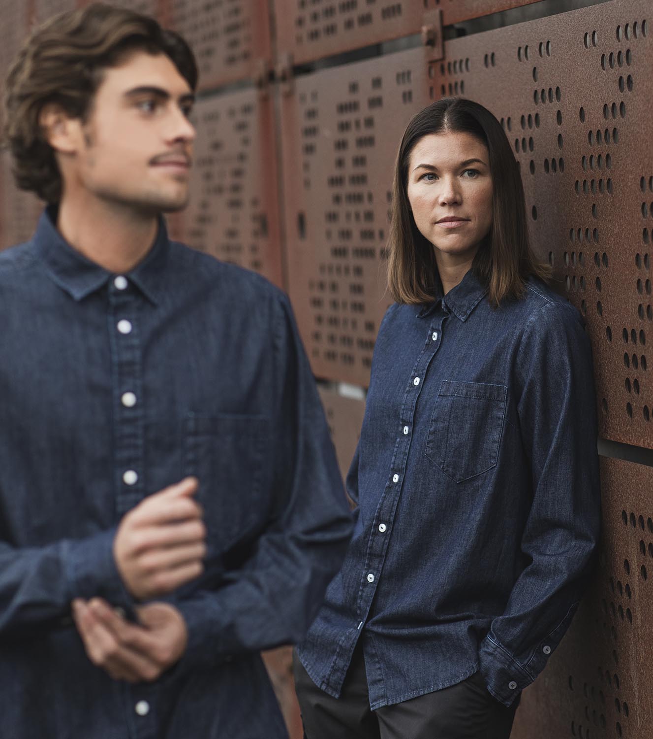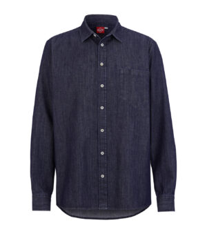 Denimskjorte for menn med normal passform. Skjorten kan bæres løs utenpå, men kan også stoppes inn i livet. Brystlomme med pennelomme.