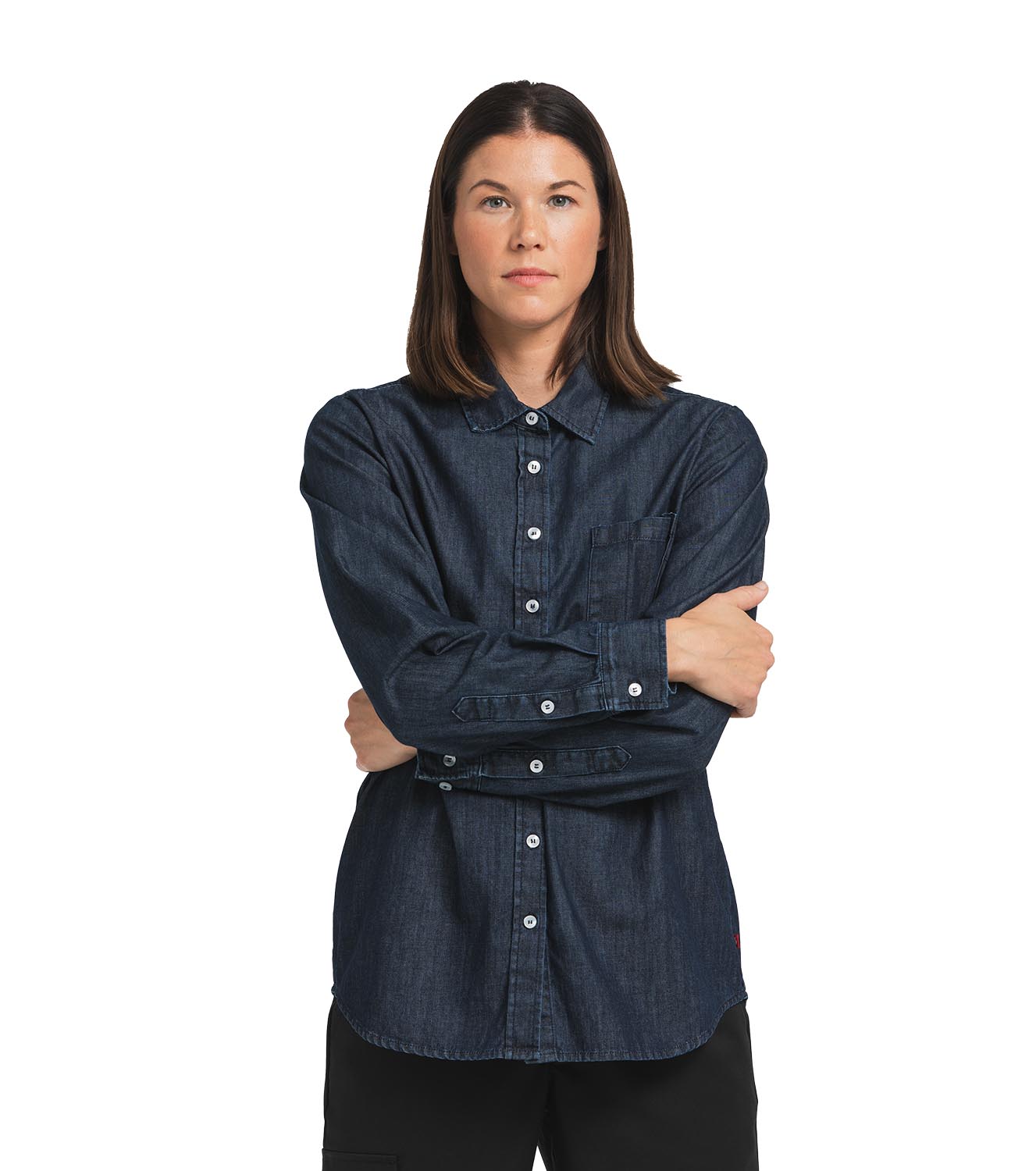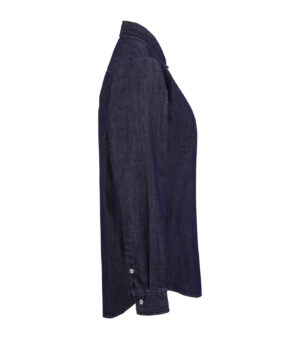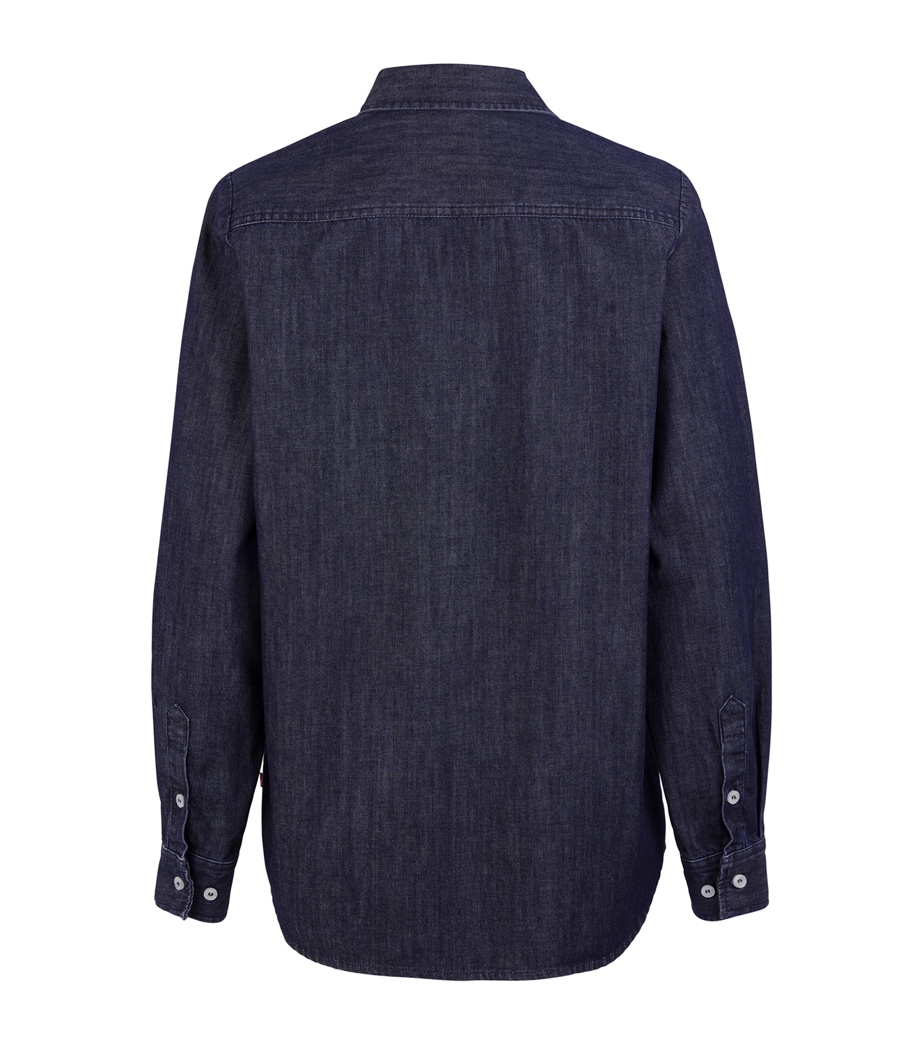 Denimskjorte for kvinner med normal passform. Skjorten kan bæres løs utenpå, men kan også stoppes inn i livet. Brystlomme med pennelomme.