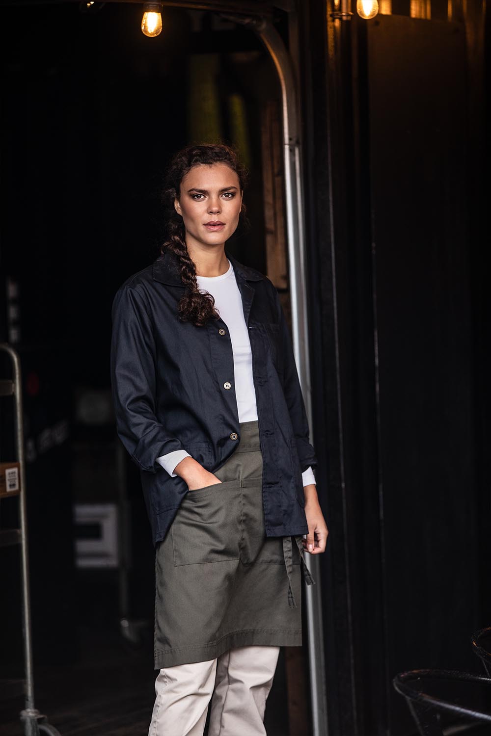 Jakke i unisex-modell med klassisk krage og sidelommer. Lengde midt bak i str. M ca. 75 cm