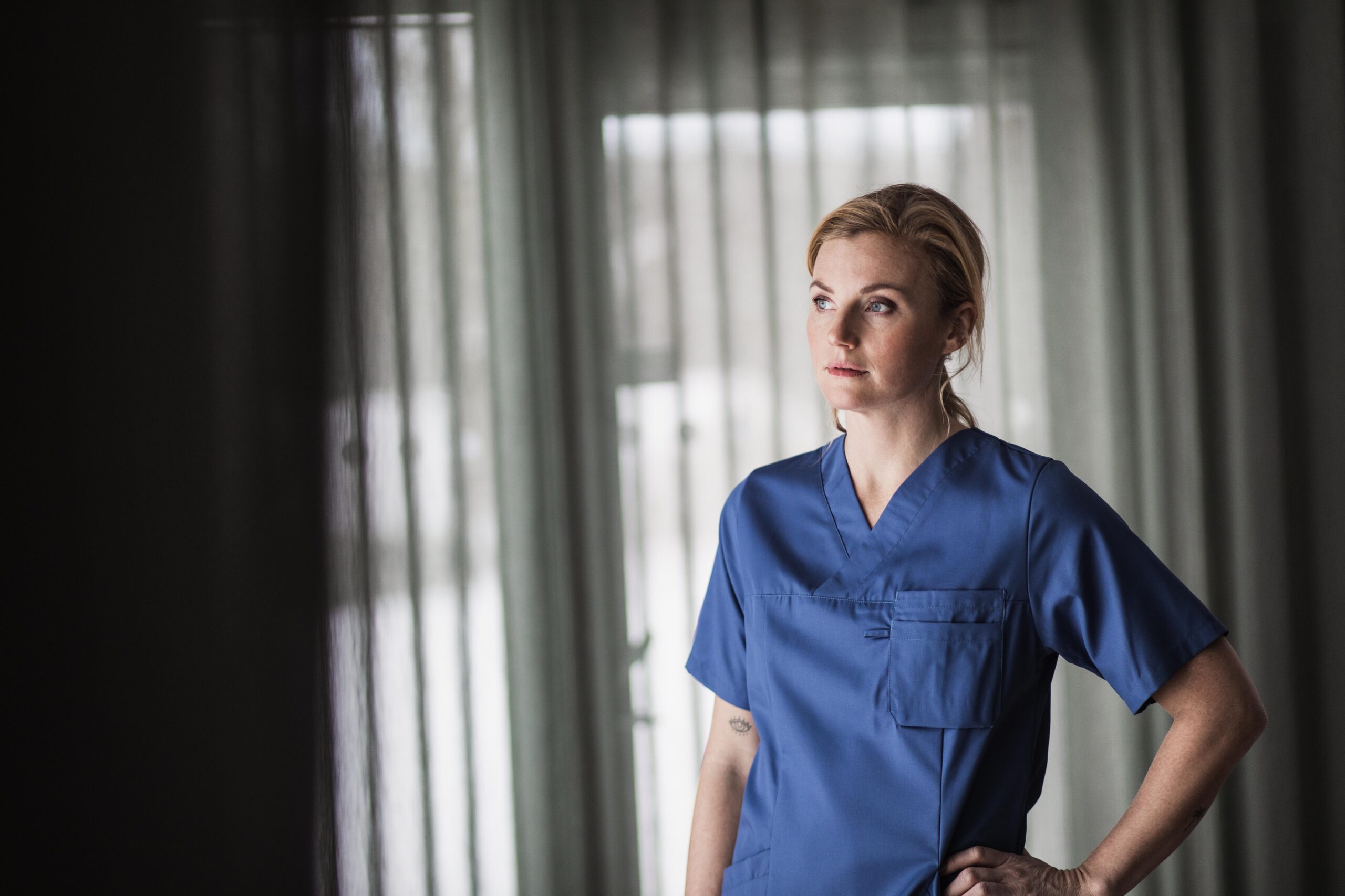 Klassisk kjole for pleie og omsorg med lommer foran. Produktet inngår i vår Segers Green-kolleksjon.
