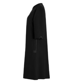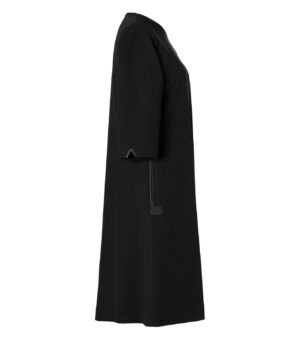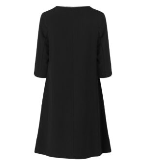 Kjole med 3/4 arm med utsvingt nederkant og sidelommer. Lengde midt bak i str. C38 er 97 cm.