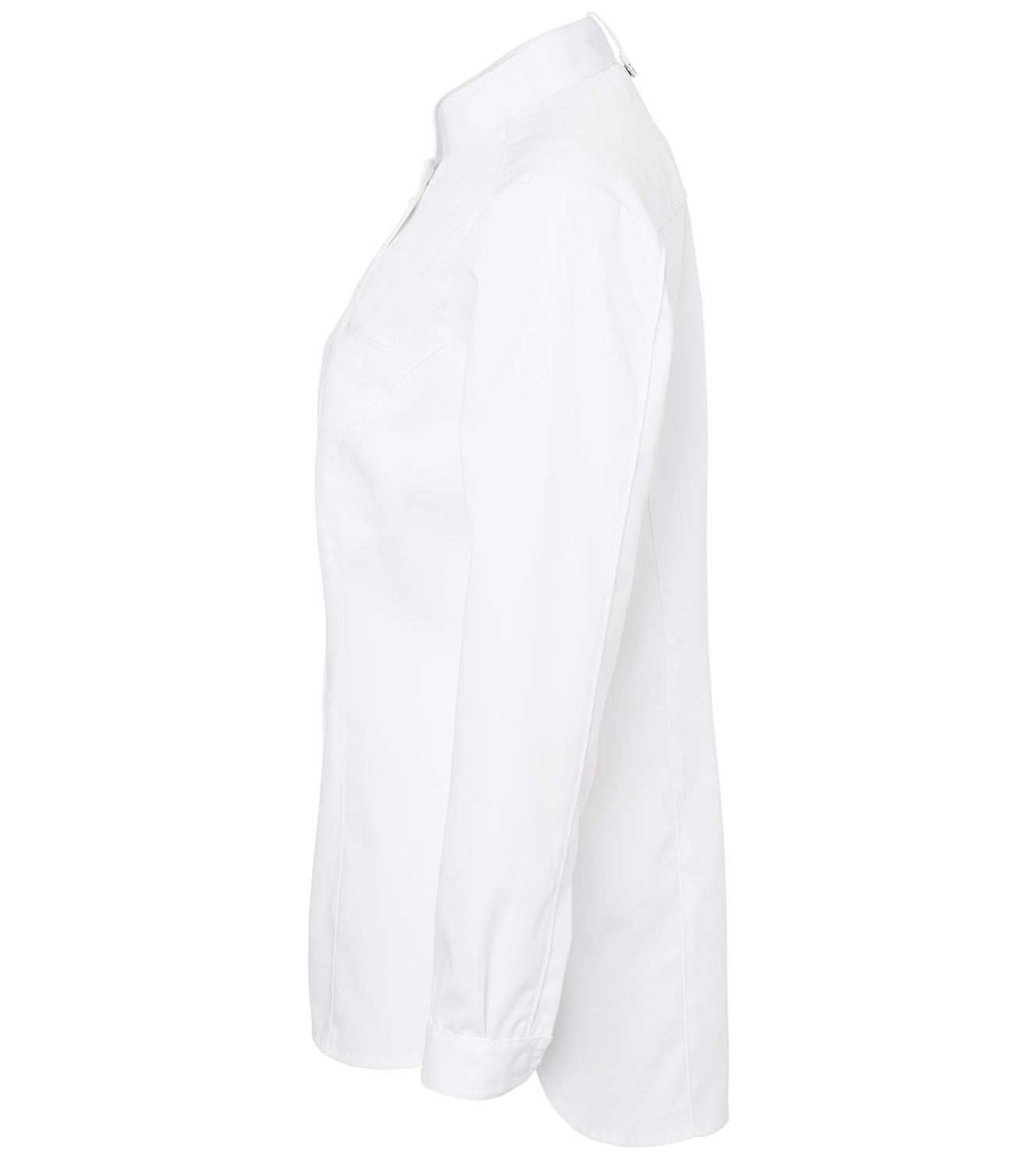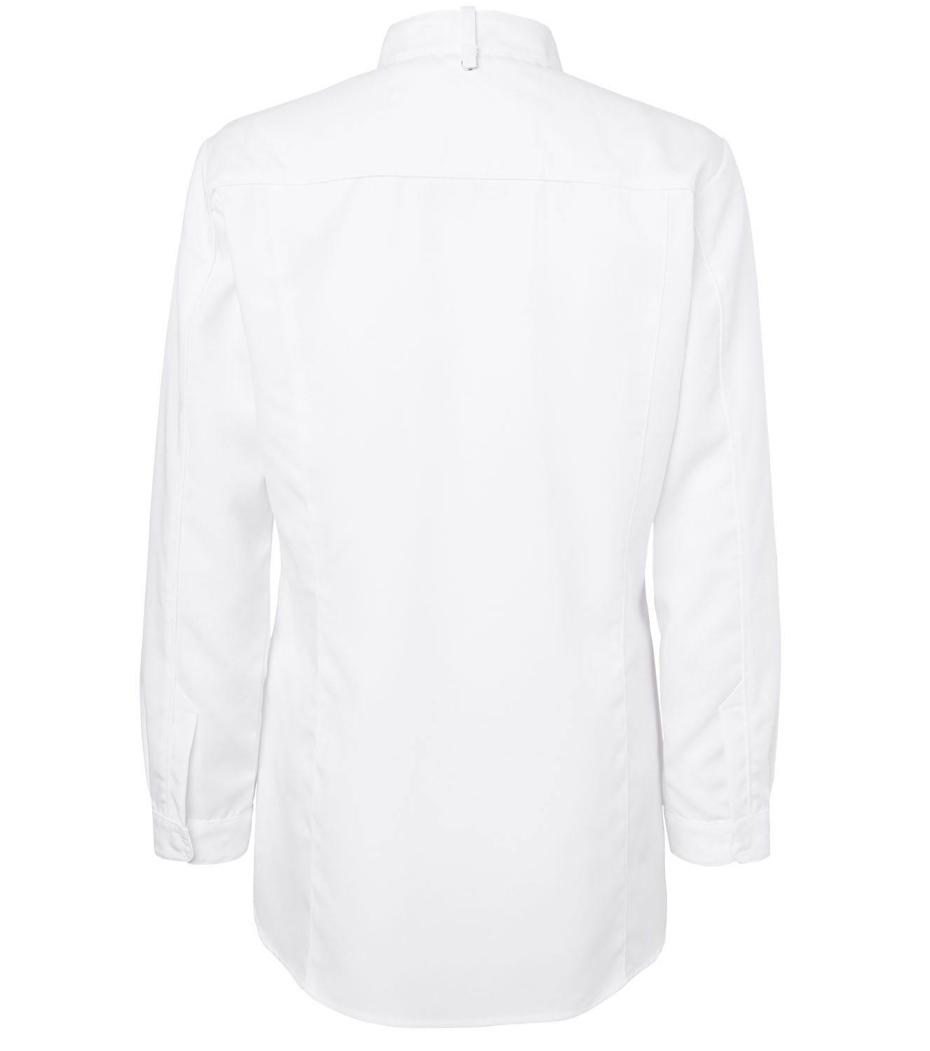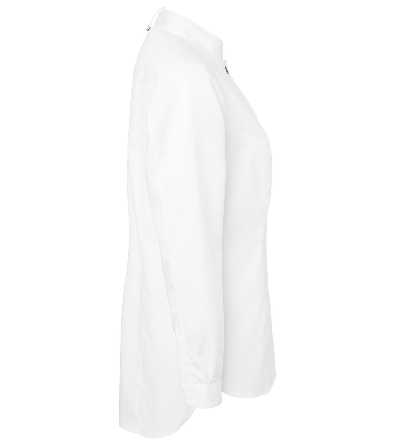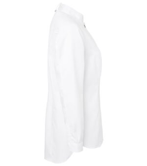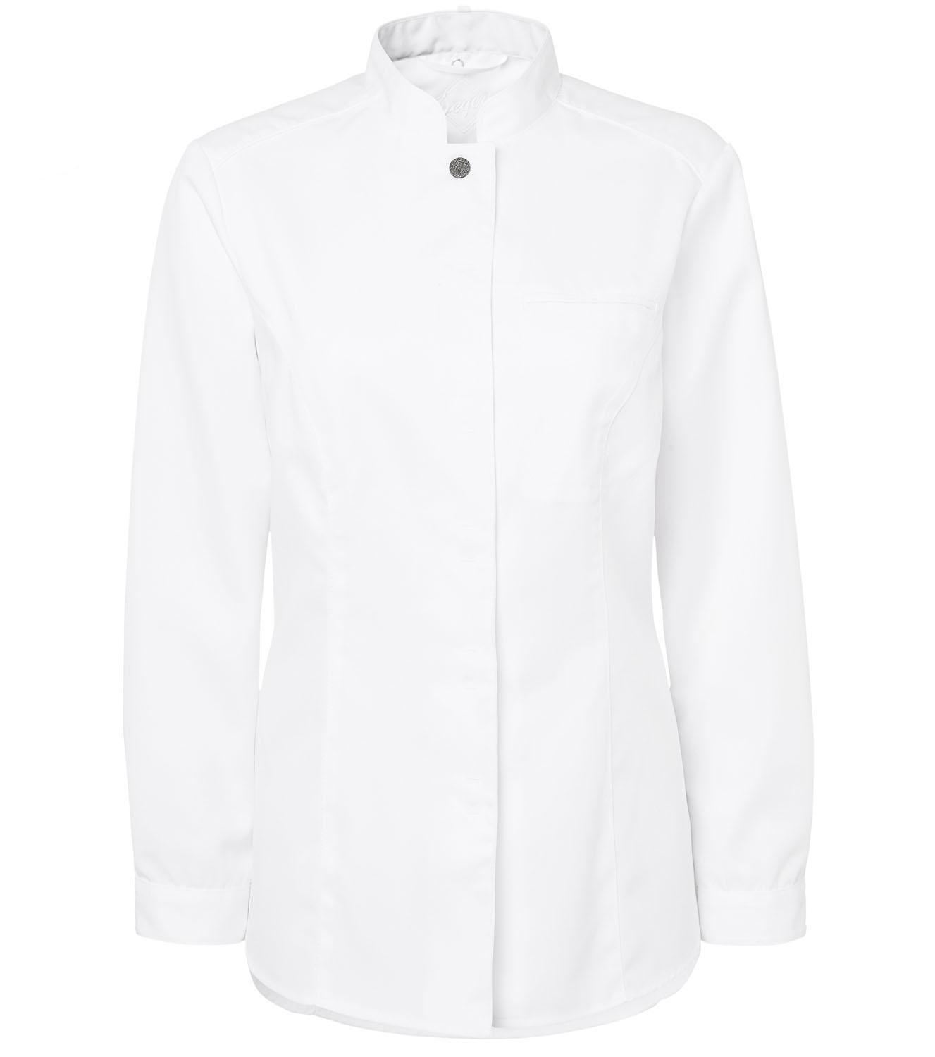 Moderne kokkejakke med lang arm med litt smalere passform til dame. Modellen er inspirert av en skjorte så den har en avrundet nederkant og er lenger bak. Produktet inngår i vår Segers Green-kolleksjon.