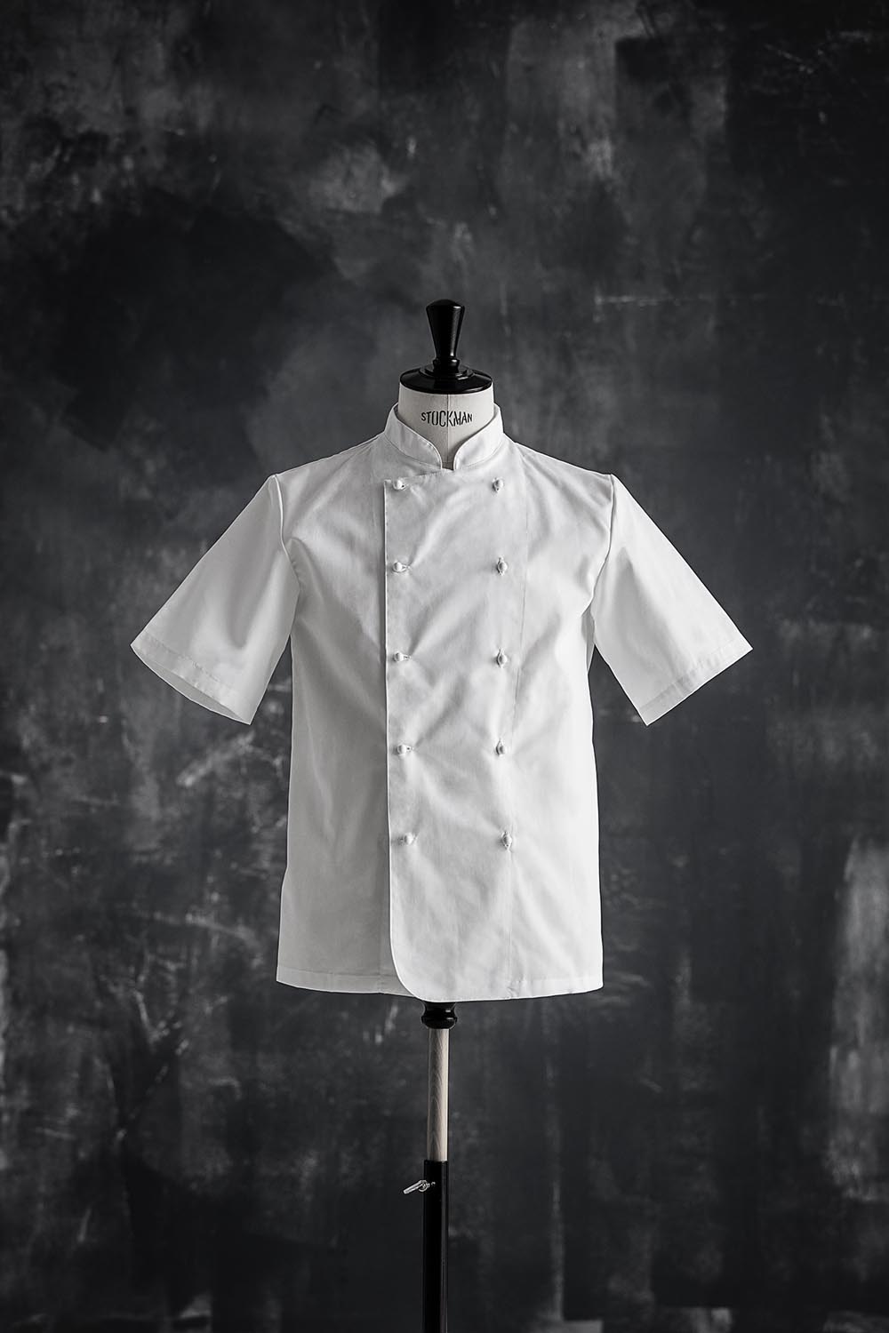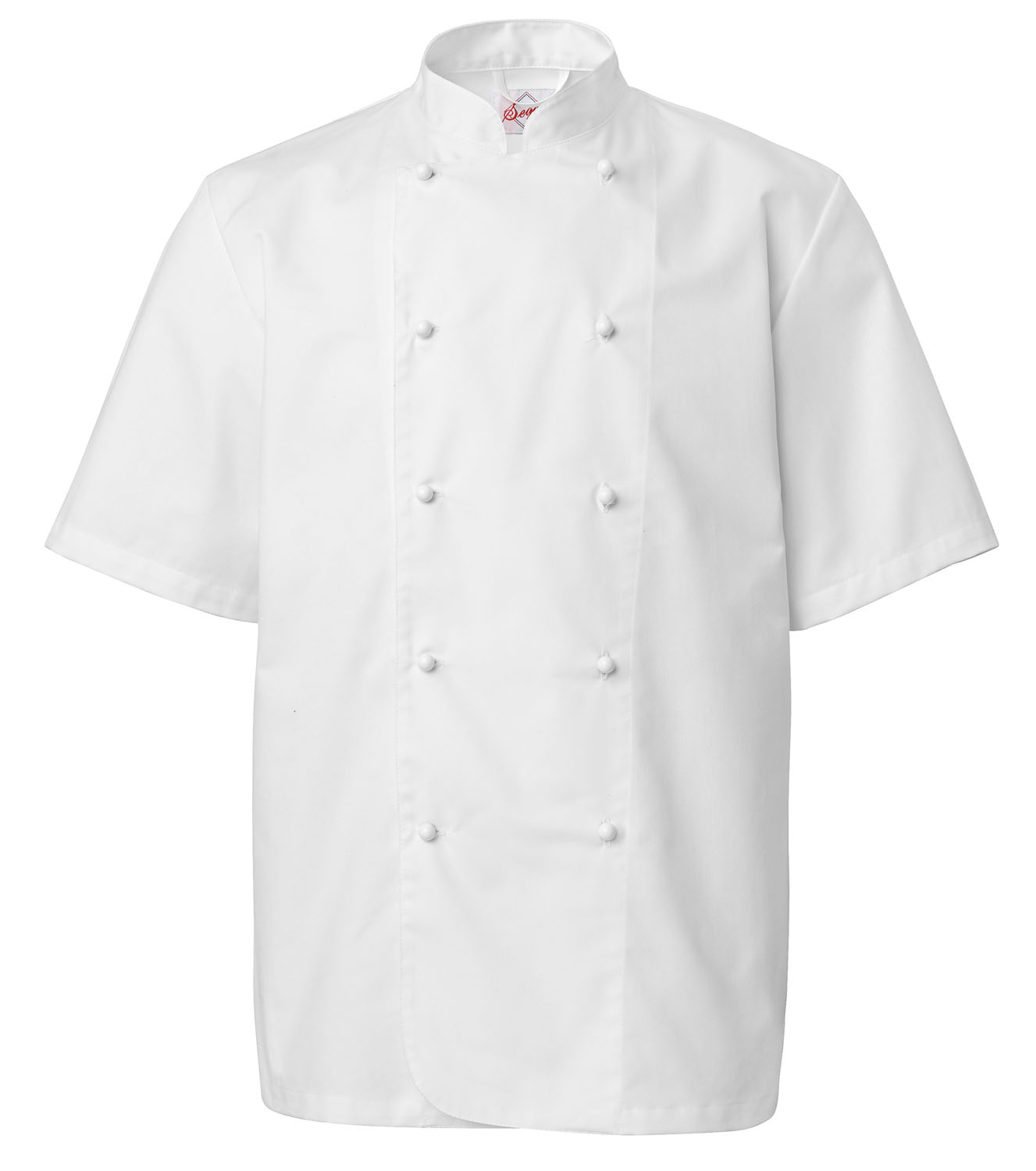 Kokkejakke i klassisk dobbeltkneppet rett modell med kort arm til herre