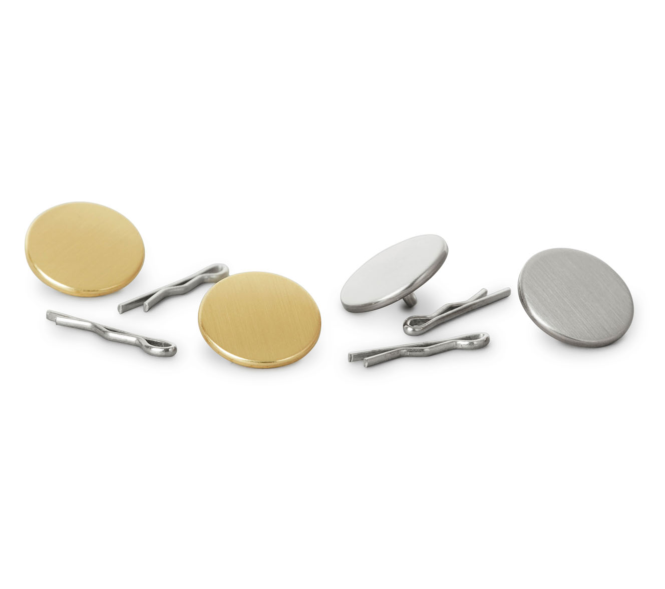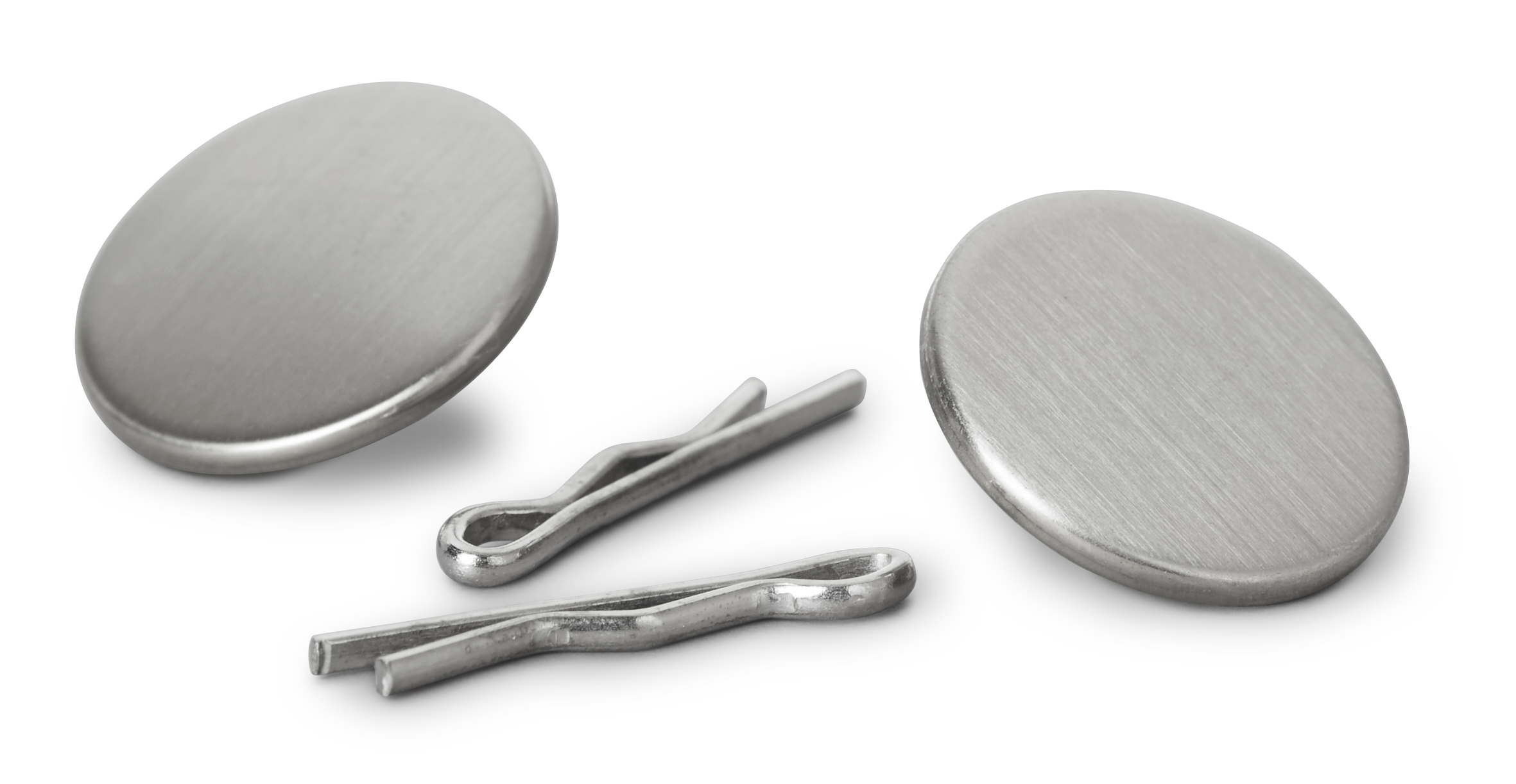 Metallknapper med klips 5-pakning. Til serveringsjakker 1010/1015, 1200/1300. Tas av plagget før vask.
