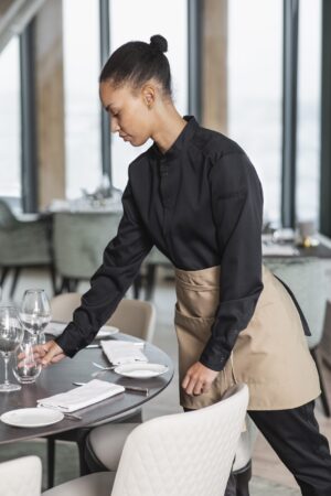 Segers klassiske midjeforkle finnes nå i to størrelser og i materialer som er bedre for miljøet, og finnes i mange farger. Produktet inngår i vår Segers Green-kolleksjon