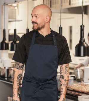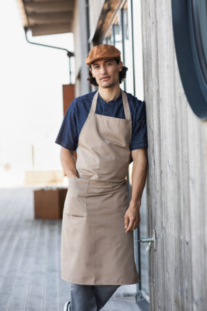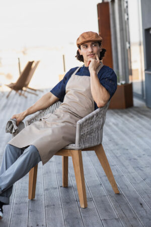 Smekkeforkle i klassisk modell med nakkebånd og romslig lomme på høyre side. Produktet inngår i vår Segers Green-kolleksjon.