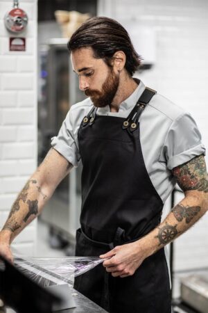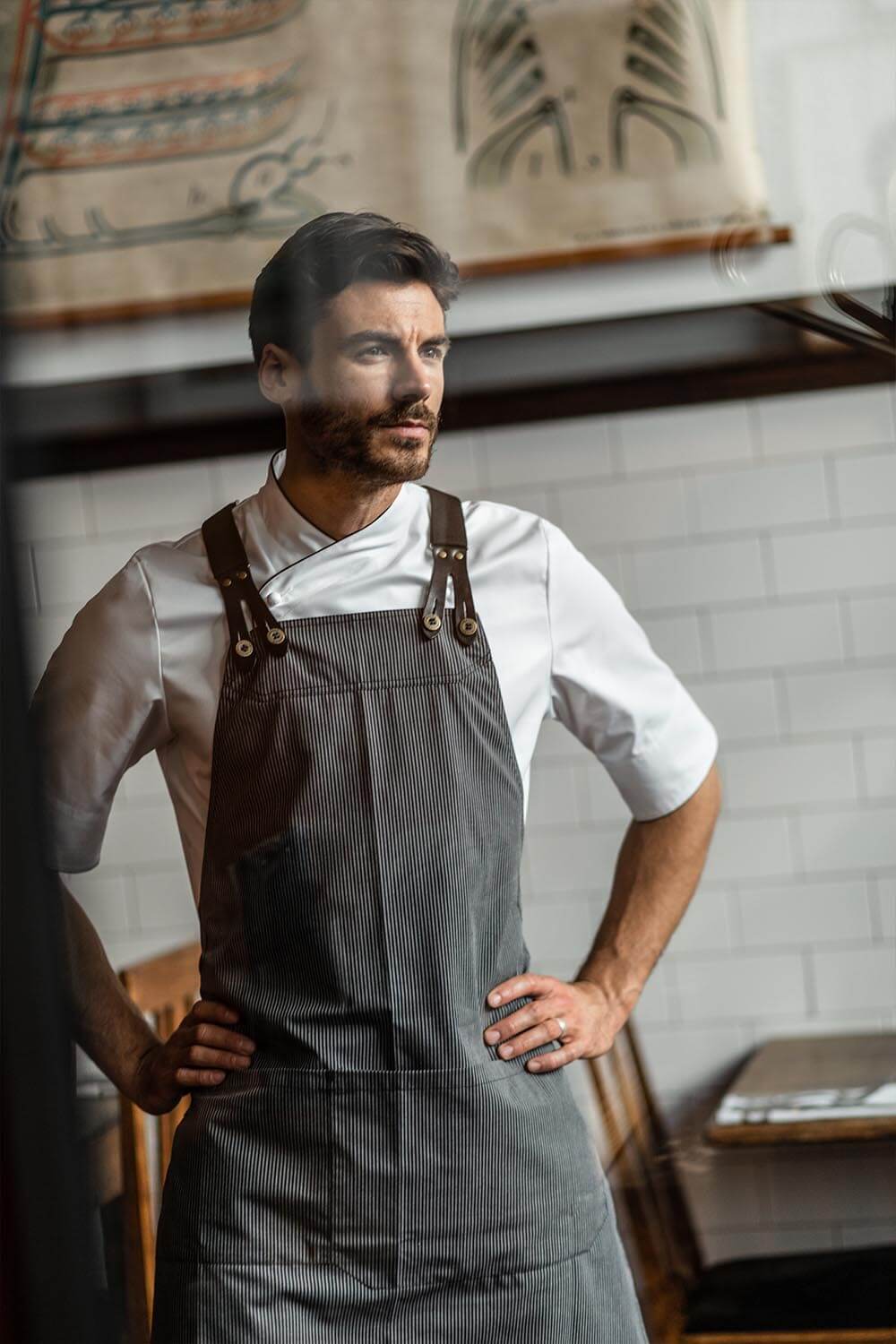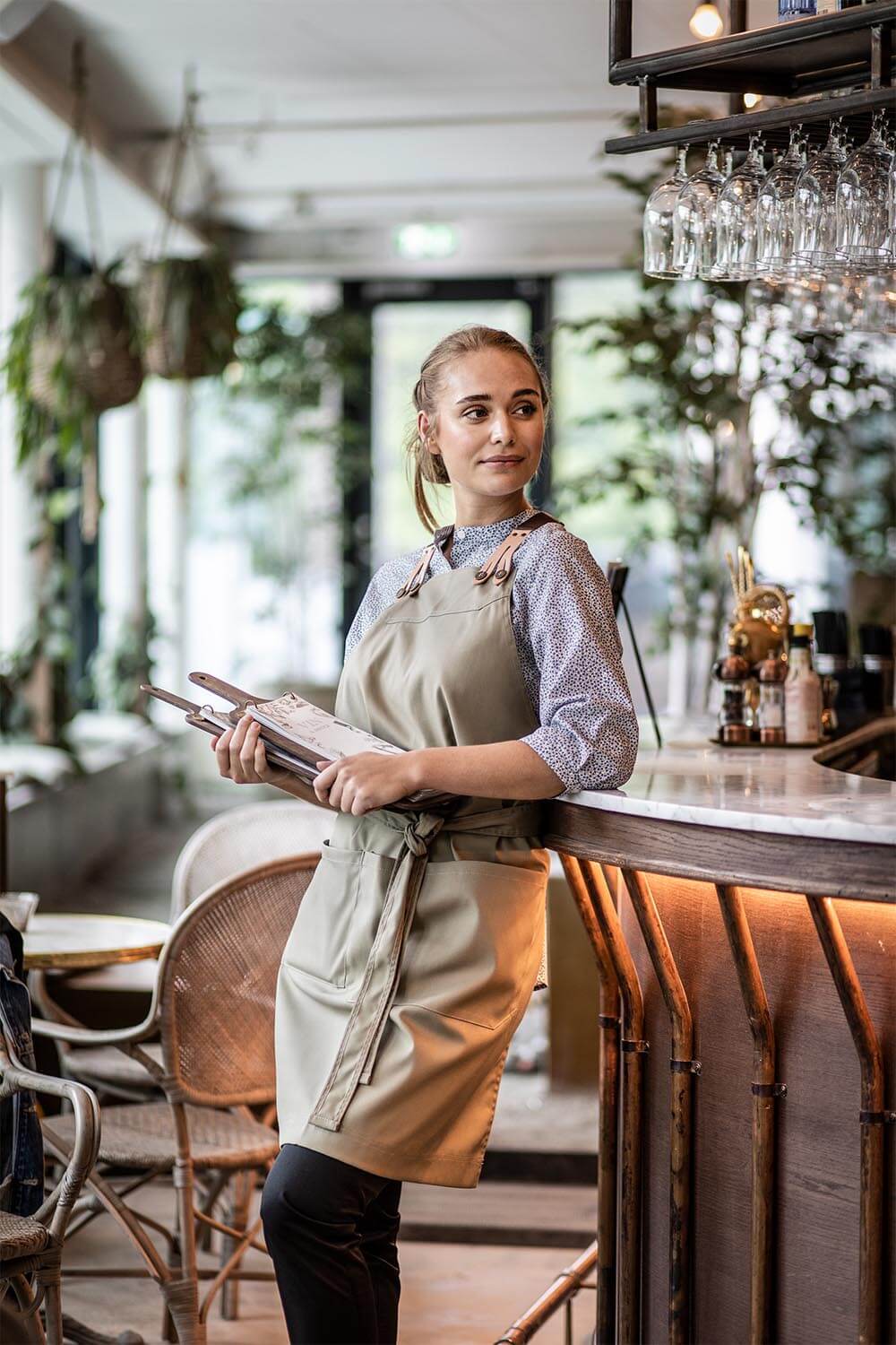 Justerbare strikkseler. S/M (ca. 54-80 cm), L/XL (ca. 68-108 cm). Passer til forkle 4078