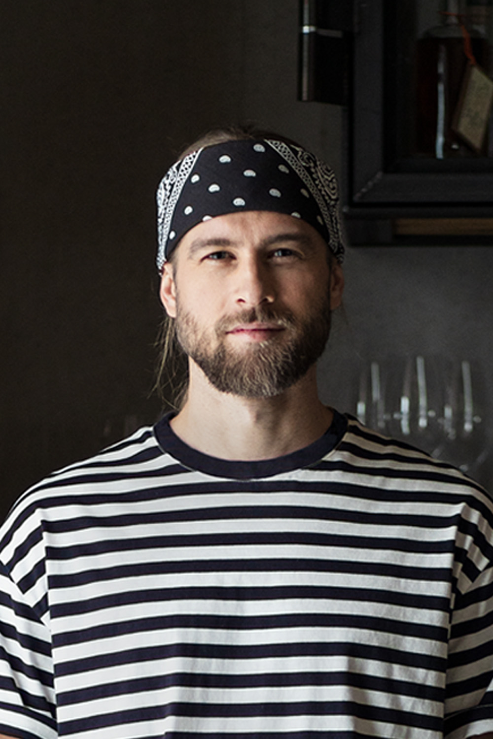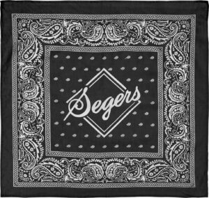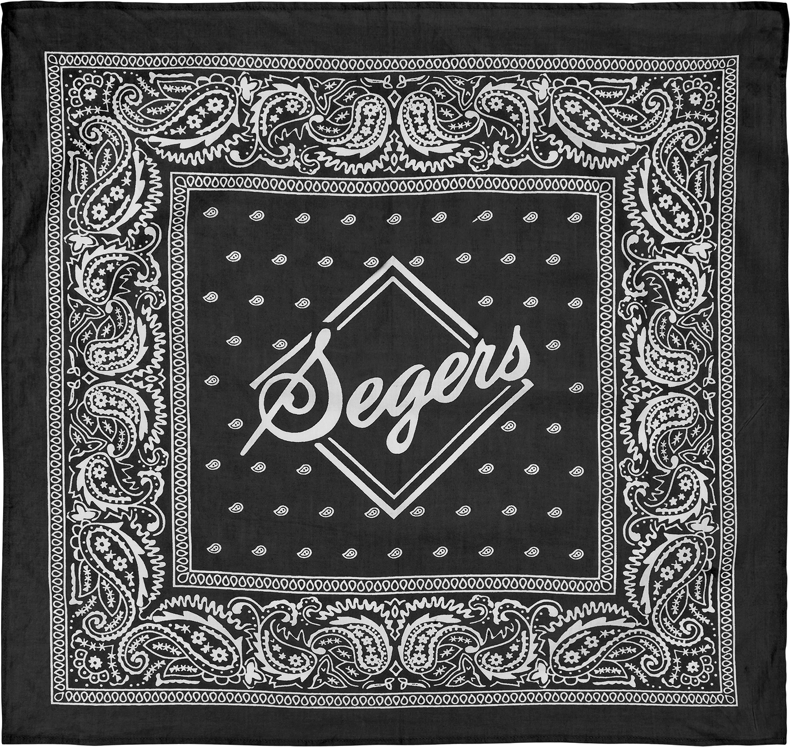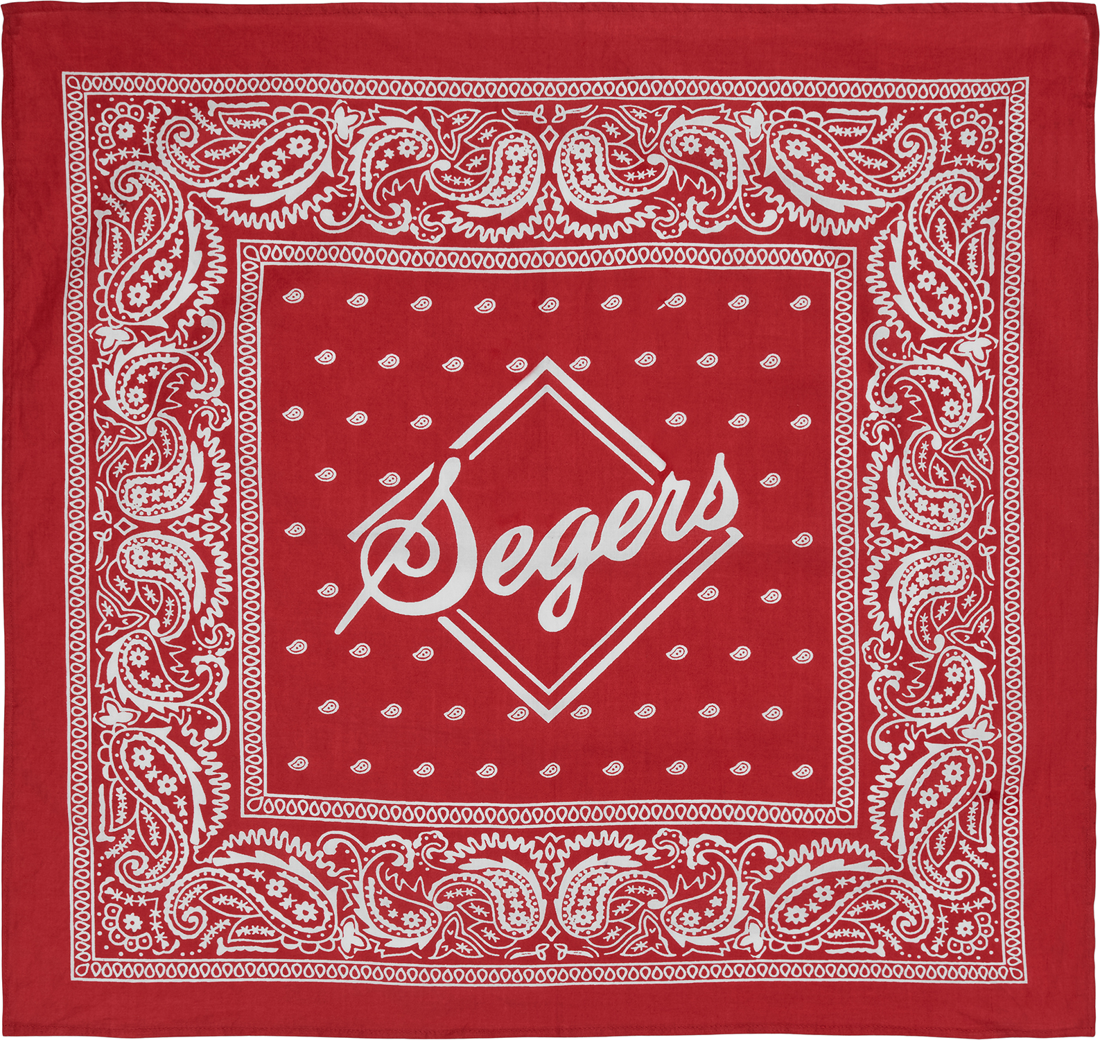 Tørkle i bomull med klassisk trykk i paisley mønster og Segers-logo.