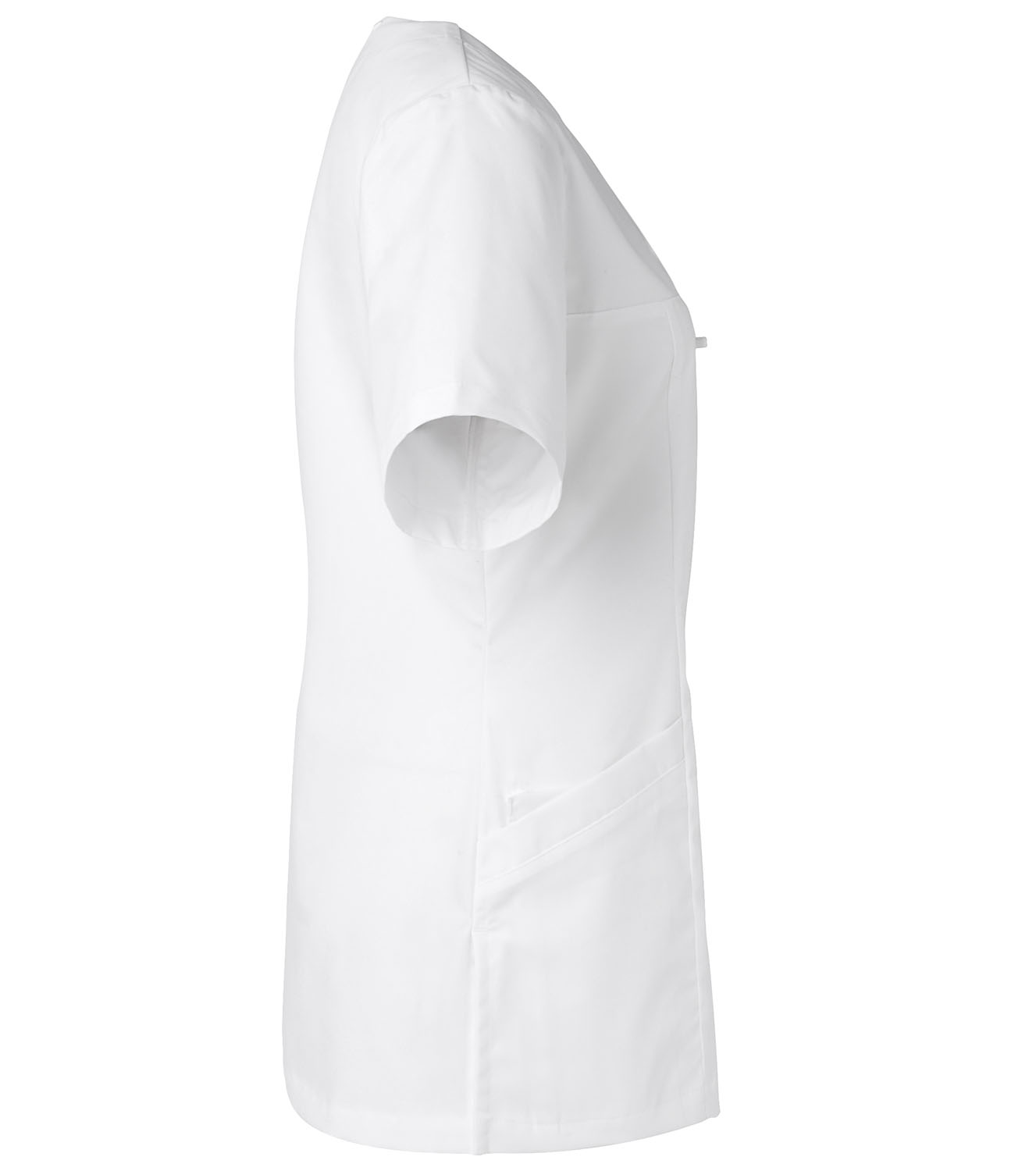 Klassisk tunika for pleie og omsorg til dame med lett figursydd passform og dype lommer