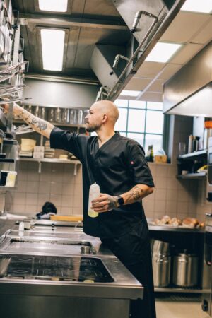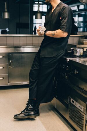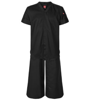 En asiatiskinspirert kokkejakke med kort arm og bukse i ¾-lengde som er utviklet i resirkulert materiale og med minimalt med stoffrester i produksjonen. Designen i kombinasjon med det unike stoffet gir et produkt som ikke bare er lett og behagelig å bære, men innebærer også at vi tar noe som har blitt kastet og skaper noe nytt. Produktet inngår i vår Segers Green-kolleksjon.